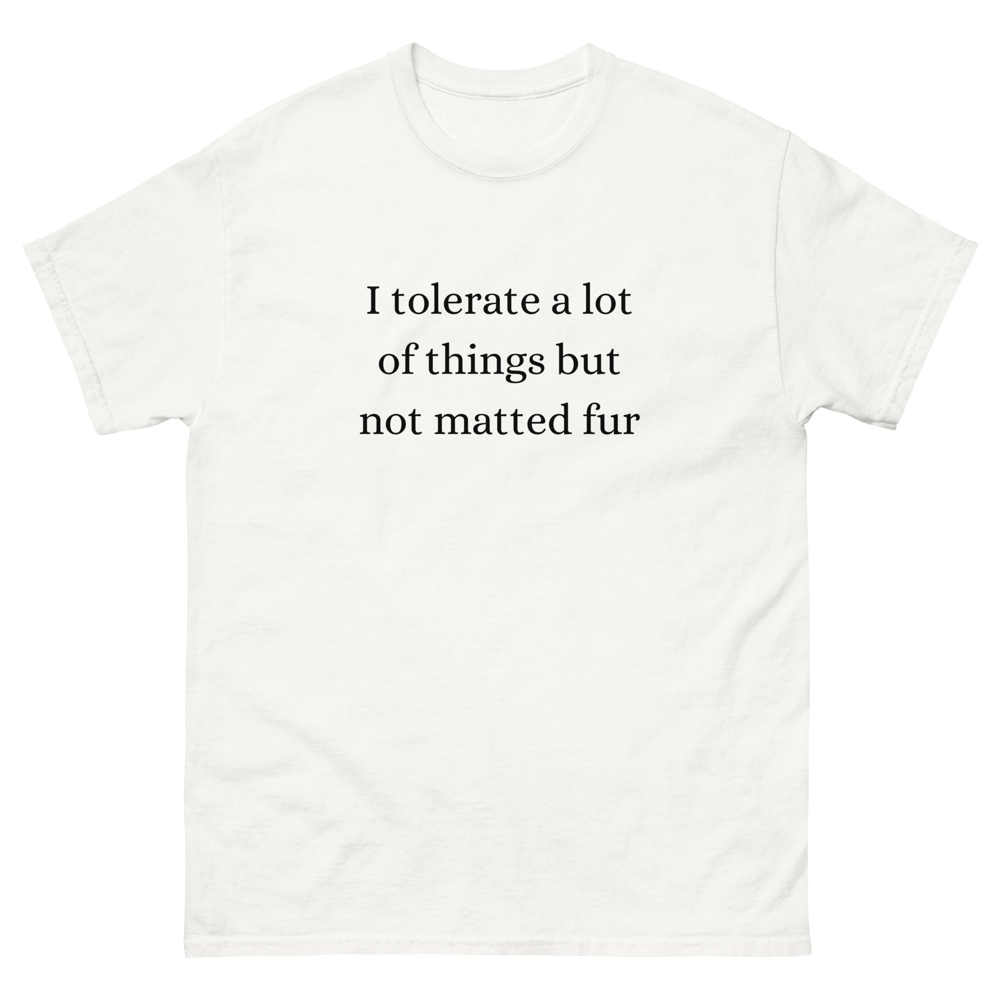 Make your message clear with our “I Tolerate A Lot Of Things But Not Matted Fur” Women’s T-Shirt. Crafted from 100% cotton, this tee offers soft, breathable comfort for busy grooming days. Featuring a bold, relatable statement, it’s the perfect shirt for groomers who care about quality work and want to add a little humor to their daily routine.